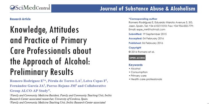 Hace ya más de dos años que os pedimos colaboración en el blog para un estudio sobre Conocimientos, Actitudes y Práctica de los Profesionales de Atención Primaria sobre el Abordaje del consumo de Alcohol (ver Estudio sobre abordaje del consumo de alcohol en Atención Primaria). Recogimos más de 1100 encuestas y los resultados preliminares han sido publicados en la revista Journal of Substance Abuse & Alcoholism: “Knowledge, Attitudes and Practice of Primary Care Professionals about the Approach of Alcohol: Preliminary Results”.